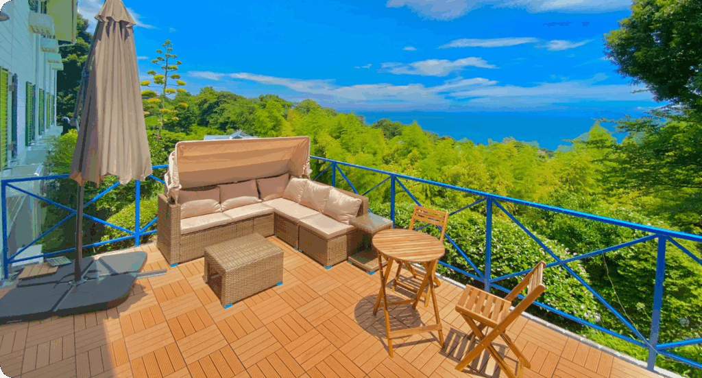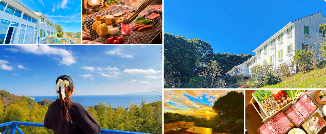 伊豆高原の高台に佇む全室オーシャンビューの当館からは、